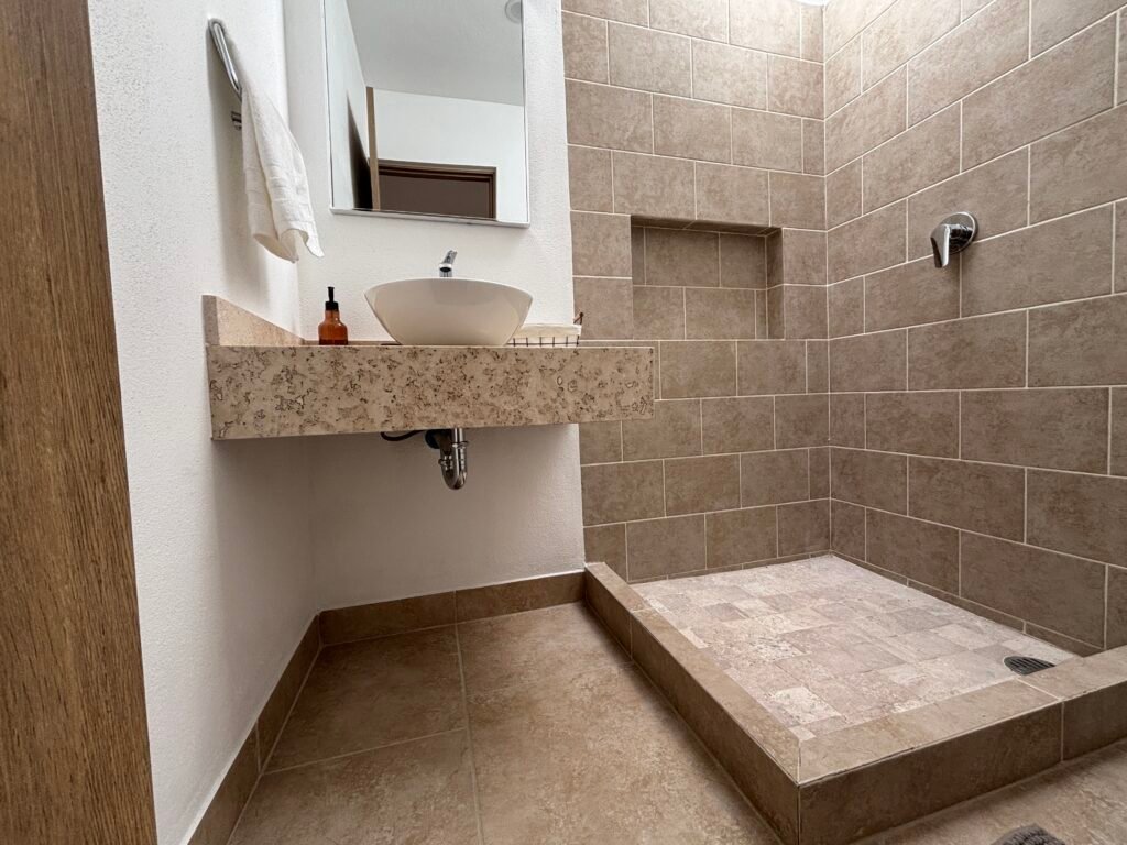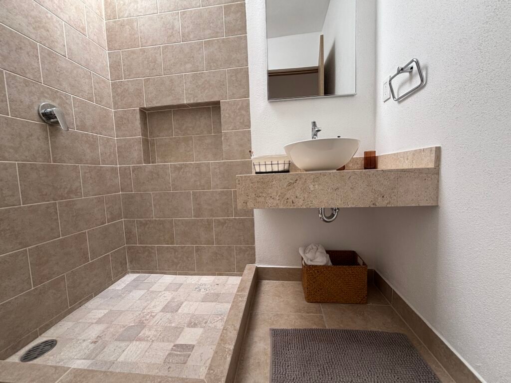 • Planta Alta: 3 recámaras. La recámara principal cuenta con vestidor y baño completo; las dos recámaras secundarias comparten un baño completo adicional.