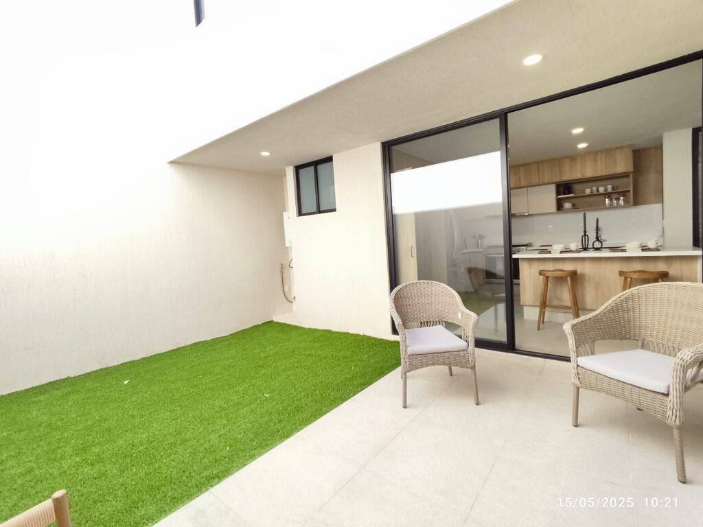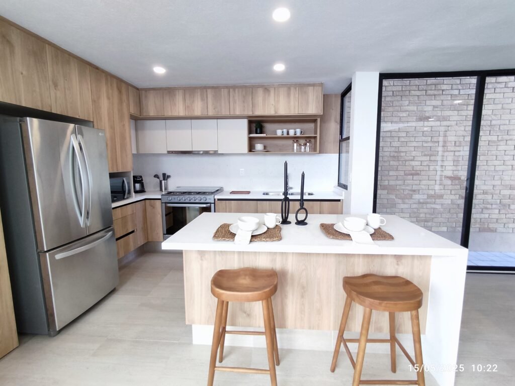 - Planta Baja: Sala a doble altura con vista al jardín, comedor espacioso, cocina equipada con isla desayunador, medio baño para visitas, terraza, jardín privado y área de lavado.
